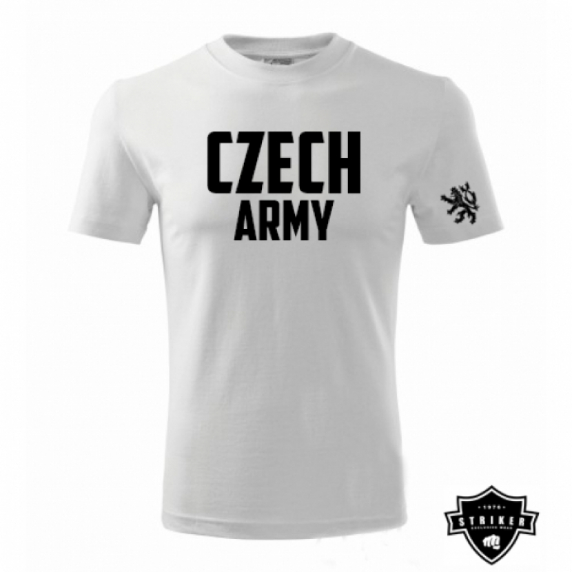 Bavlnené tričko o gramáži 180g/m2 s vypracovaným originálnym motívom nápisu CZECH ARMY a Českým levom na rukáve.